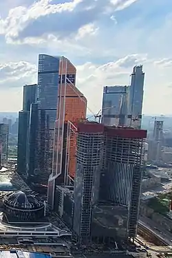 The Moscow Towers is a skyscraper under construction located on plot 15 in the Moscow International Business Center in Moscow, Russia. It will be 283.4 meters tall and will have 62 floors with 400,000 m2 of floor area.