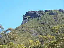 Granite outcrops in the state are ecologically complex and insular, often providing niches for ancient lineages of organisms that are relics of a wetter climate. These niches include unfractured rock surface that is covered in biofilm, composed of cyanobacteria that give massive rockfaces a characteristic colour. Crusts of lichens also appear, visible mats constructed by blue-green alga and fungal associations that may be up to a billion years old. Mats composed primarily of moss and spike-moss are also found when adequate moisture is available, which in turns provides opportunies for other organisms.[1] At least 1300 plant species occur on granite outcrops in Western Australia, many of which are endemic to these sites.[2] Some of these plant species gain a purchase a clefts and fissures in the rock face, and trees or large shrubs may appear in a bonsai-form.[3] Slabs of rock, split by exfoliation or cracked and pushed up to an A profile, form habitat that is cooler, damper, and secure for plant and animal species that are often specially adapted to the narrow environ.[4]