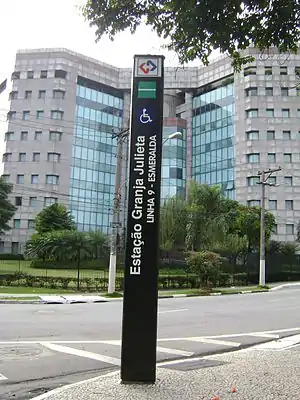 Granja Julieta is a train station on CPTM Line 9-Emerald, located in Chácara Santo Antônio neighbourhood, district of Santo Amaro in São Paulo.