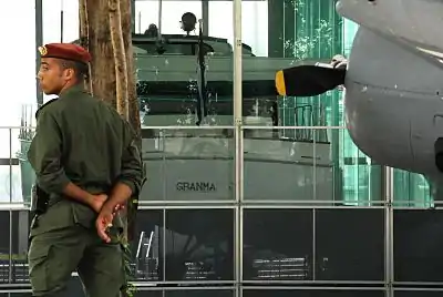 Granma is the yacht that was used to transport 82 fighters of the Cuban Revolution from Mexico to Cuba in November 1956 for the purpose of overthrowing the regime of Fulgencio Batista. The 60-foot (18 m) diesel-powered cabin cruiser was built in 1943 by Wheeler Shipbuilding of Brooklyn, New York, as a light armored target practice boat, US Navy C-1994 and modified postwar to accommodate 12 people. "Granma", in English, is an affectionate term for a grandmother; the yacht is said to have been named for the previous owner's grandmother.[1][2][3]