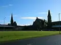 The setting of the Grannie Stone with F. T. Pilkington's 1863 Trinity church to the left and the former Wilson Fullarton Free church to the right[13]