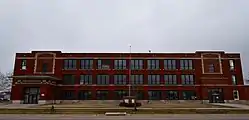 Grant Vocational High School, also known as the Board of Education and the Cedar Rapids School District Central Office, is a historic building located in Cedar Rapids, Iowa, United States. Completed in 1915, this is a rare example of a vocational high school in Iowa as only a handful were ever built.[2] While it offered various student activities in athletics and the arts, its curriculum was based on the manual arts instead of humanities or college preparatory courses. A Progressive Era idea, vocational education began in Cedar Rapids in 1904. Within a year there was a call for a dedicated vocational high school. There was much debate as the local school district's regular high school was beyond capacity and there was a need for new elementary schools. Efforts to build the school began with the passage of a bond referendum in 1911. Cedar Rapids architect William J. Brown designed the three-story, brick Prairie School structure and it was built by the F.P. Gould Company of Omaha.