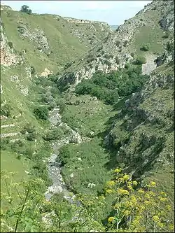 The Gravina di Matera is a river in the Apulia and Basilicata regions of southern Italy.[1] Its source is between Altamura and Gravina in Puglia in the province of Bari. The river flows southeast and curves east before again flowing southeast. It then flows into the province of Matera and is joined by a left tributary at Matera. The river forms the border between the province of Matera and the province of Taranto near Montescaglioso and Ginosa. Finally, it joins the Bradano as a left tributary in the province of Taranto.