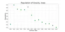 Gravity got its start in the year 1881, following construction of the railroad through the territory. It was incorporated in 1883.[3] The origin of the name "Gravity" is obscure.[4]