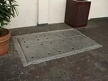 Manhole covers of a grease trap outside a restaurant.