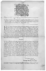 In the immediate aftermath of the fire, the Massachusetts colonial legislature advanced £3,000 to Boston for relief assistance.[10] Over the following months, the town received several donations from throughout the British Empire as news of the disaster spread. The Assemblies of Pennsylvania and New York voted to send relief funds, while in Nova Scotia a significant amount of money was raised for the town, and individuals from as far away as London sent contributions.[11] A petition for assistance was also sent to either King George II or George III, but what action was taken as a result is unknown.[12]