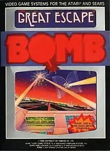 Great Escape is a multidirectional shooter published for the Atari 2600 in 1983.[1] It was produced by Bomb, a line of video games from developer Onbase Co. based out of Asia.[2] It received mixed-to-negative reviews from critics, with reviewers making comparisons with Defender[3] and Asteroids.[2]