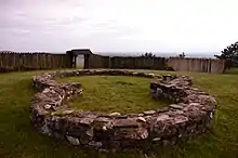 The sturdy Devín Castle, in vicinity of Bratislava, guarded Great Moravia against attacks from the West.[206] Although some authors claim that it was built only later as a stronghold of the Kings of Hungary,[207][208] excavations have unearthed an older Slavic fortified settlement founded in the 8th century.[206] During the Great Moravian period, Devín Castle was a seat of a local lord, whose retainers were buried around a stone Christian church.[206] These two castles were reinforced by smaller fortifications in Devínska Nová Ves, Svätý Jur and elsewhere. Another example is the fortress at Thunau am Kamp near Gars am Kamp, overlooking the river Kamp in Lower Austria. The defences here re-utilised banked defences of the Bronze Age and were only slightly smaller (fifty acres) than the area of the contemporary Frankish Emperor's capital of Regensburg.[209]