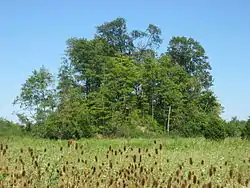 The Great Mound is a massive Native American mound in the southwestern part of the U.S. state of Ohio. Located in Section 19 of Madison Township in Butler County, it has a height of 43 feet (13 m) and a circumference of 511 feet (156 m).[2]: 224 Its total volume is nearly 825,000 cubic feet (23,400 m3),[2]: 224 making it the largest mound in Butler County and one of the largest in southwestern Ohio.[3] Because of the mound's height and its placement on a ridgeline, an individual at the summit can see for a great distance. In the late nineteenth century, it was theorized that mounds such as the Great Mound were built as observation or watch points, and that the builders maintained the ability to light fires atop the mounds as a method of communicating across wide distances.[2]: 225 The potential of these mounds for long-distance communication was demonstrated in 1990 by three groups of volunteers. After climbing the Great Mound, the first group established visual contact with the Hill-Kinder Mound in Franklin (more than 11 miles (18 km) to the northeast[4]), from which point the observers of the second group contacted the third group atop the Miamisburg Mound near Dayton.[5]