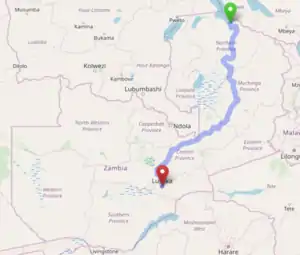 ![]() Map showing the Great North Road through Zambia | |