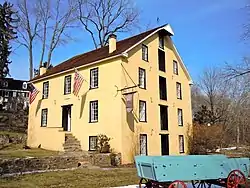 Great Valley Mill, also known as the Old Grist Mill in the Great Valley, is a historic grist mill located in Tredyffrin Township, Chester County, Pennsylvania. It was built in 1859, and is a four-story, rectangular banked stuccoed fieldstone structure. It measures 42 feet (13 m) by 45.5 feet (13.9 m), and has a gable roof.[3] It was listed on the National Register of Historic Places in 1983.[1]
