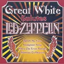 Great Zeppelin: A Tribute to Led Zeppelin is a cover album released by the American hard rock band Great White in 1998, dedicated to songs of Led Zeppelin. It was recorded live in a concert that took place at The Galaxy Theatre of Santa Ana, California in December 1996 and released by the French label Axe Killer. The American edition was issued by Deadline Records in 1999.[3] Deadline Records also issued a very rare vinyl version of the album in 1999, omitting 4 tracks due to time limitations of vinyl. Songs from this album appear on many compilations and also on re-issues of older albums as bonus tracks. The album was re-issued in 2005 by the Canadian label Legacy, with the title Great White Salutes Led Zeppelin. The entire album appears also on Great White's double-CD compilation A Double Dose issued by Deadline Music in 2005, along with the album of covers Recover.