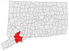 The MSA associated with Bridgeport is the Bridgeport–Stamford–Norwalk–Danbury MSA and consists of the entirety of Fairfield County with 23 towns.[8] While statistically similar in terms of population and extent to the NECTA definition, the MSA includes the city of Danbury and its suburbs, and excludes the Valley region.