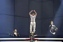 During the semi-final allocation draw on 20 January 2014 at the Copenhagen City Hall, Greece was drawn to compete in the second half of the second semi-final on 8 May 2014. In the second semifinal, the producers of the show decided that Greece would perform 13th, following Switzerland and preceding Slovenia. Greece qualified from the second semi-final to compete in the final on 10 May 2014.[16][17] During the winner's press conference for the second semi-final qualifiers, Greece was allocated to compete in the first half of the final. The result was the 20th place for the Greek delegation, which equalled their worst placing in the history of the country in the Contest.[18][19]