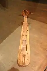 The primary instruments in Pontic music are a bowed instrument known as Kemençe of Laz or the Pontic Lyra, which originated in the Byzantine period and is similar to the Byzantine lyra and Cretan lyra.[33] Other bowed musical instrument are also used, such as the Kit violin and Rebec, these are more popular in the Western region of Pontus.[33] Other instruments include the drums, lute, Askomandoura (a type of bagpipe), Daouli (a type of drum) and Aulos (a wind instrument). Folk dances from Pontus include slower dances including the Omál, Tik and Dipát. Faster dances include the Tik Tónyia and Kotsari and other dances include Giouvarlantoum, Serra and Tas.[34]