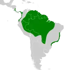 The population in Nicaragua, Costa Rica and Panama is also disjunct being west of the Andes cordillera; it is contiguous with a coastal population from central coastal Colombia south to central coastal Ecuador.
