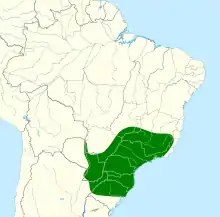 The green-billed toucan (Ramphastos dicolorus), or red-breasted toucan, is a near-passerine bird in the family Ramphastidae found in southern and eastern Brazil, Pantanal of Bolivia, eastern Paraguay and far north-eastern Argentina. It is primarily found in the Atlantic Forest. Overall, it is fairly common, and therefore considered to be of least concern by IUCN.[1]