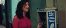 Walking the streets alone, Lorde plays a Walkman, puts on earphones, and dances joyously.[72] She then takes a payphone off its hook. During the pre-chorus, Lorde is inside the bathroom from the first scene with Antonoff playing piano in the background.[67] Several shots of her dancing and moving her hair back and forth are shown, with one particular shot showing her placing her head down on what appears to be a car with flashing green lights. In the last scene, Lorde makes her way through an overpass at sunset, as a green light reflects on her face.[73]