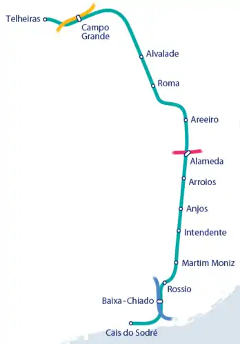 | Termini | Telheiras Cais do Sodré | |||||||||||||||||||||||||||||||||||||||||||||||||||||||||||||||||||||||||||||||||||||||||||||||||||||||||||||||||||||||||||||||||||||||||||||||||||||||||||||||||||||||||||||||||||||||||||||||||||||||||||||||||||||||||||||||||||||||||||||||||||||||||||||||||||||||||||||||||||||||||||||||||||||||||||||||||||||||||||||||||||||||||||||||||||||||||||||||||||||||||||||||||||||||||||||||||||||||||||||