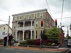 Green Mansion is a historic home and later commercial building located at Newark in New Castle County, Delaware. It was built about 1882 and is an oblong, three-story, brick building with a flat roofline. It features a green serpentine facade with a two-story bay window at each end, joined in the center by an ornate two-tiered porch featuring paneled columns. It was originally built as a two-story residence and expanded in the early 20th century when it began being used for commercial purposes.[2]
