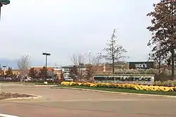 Following the construction of several new homes in the area, as well as increase in traffic along US-23 and Interstate 96,[2] plans were made in 2004 to build a new lifestyle center called Green Oak Village Place at the interchange of U.S. 23 and Lee Road southeast of town. A small shopping center featuring Costco and Kohl's had already been built at the southwestern quadrant of this interchange.[3] In December 2004, a preliminary approval was granted to build the center, which was developed by Lormax Stern in association with REDICO and Quadrants, Inc. The city's officials formed a task force to determine the impact that the mall would have on the city's downtown business district.[4] Construction began in June 2005, ahead of schedule.[5] At the same time, the Lee Road interchange with U.S. 23 was rebuilt to include three roundabouts,[6] leading one local resident to create a board game based on the roundabouts.[7]