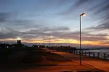The Green Point Lighthouse, Cape Town is an operational lighthouse on the South African coast.[1] First lit on 12 April 1824, it is located on Mouille Point.[2][3][4] The lighthouse was the first solid lighthouse structure on the South African coast and the oldest operational lighthouse in South Africa.[5] The lighthouse was commissioned by acting Governor of the Cape Colony Sir Rufane Shaw Donkin and designed by German architect Herman Shutte.[6] Building commenced in 1821 and was completed in 1823. The lighthouse started operating in 1824.[2] The lighthouse cost approximately £6,420 pounds sterling to build.[7] When the lighthouse was first lit, it burned Argand lamps fueled by sperm whale oil. The light from these lanterns could be seen for 6 nautical miles (11 km; 6.9 mi). The lighthouse was expanded to its present height in 1865.[5] In 1922, the range of the light house was extended to 22 nautical miles when 3rd order dioptric flashing lights were installed.[8] Its present characteristic is a white light flashing every 10 seconds.[9] In 1926, a foghorn was installed in the lighthouse despite a letter of complaint sent to the Mayor of Cape Town in 1923 by Green Point residents.[2] Local Residents call the Green Point Lighthouse "Moaning Minnie".