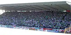 The Amalgamation of Official Northern Ireland Supporters Clubs acts as the recognised voice of the Green and White Army and co-ordinates many activities on their behalf. In addition, it regularly articulates the views of fans to the Irish Football Association and liaises with other fans groups such as the FSF.[8] The group was formed in 1999, initially to co-ordinate the activities of the various independent supporters clubs which existed at the time, but has now evolved into a much larger organisation which represents over 60 clubs with over 2,000 members.