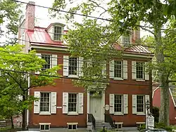 The first structure to be built on the property was a small cabin built in 1728 by John Gill Sr. This cabin was later torn down. John Gill Sr.'s son John Gill Jr. built a new house on the property in 1747.[4] In 1841, this house was torn down with the exception of two small rooms and a new house was built in its place. The new house was built by John Gill IV and is a red brick, center-hall 2+1⁄2-story Georgian-style home.[4] Alexander Oswald Brodie purchased the home in 1916 and lived there until his death two years later. The house then passed through a succession of owners until 1960 when it became the headquarters of the Historical Society of Haddonfield.[4]