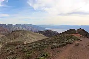 Greenwater was a mining town in the Mojave Desert that saw its rise and fall within the first decade of the 20th century.[3] Greenwater's first records date back to the year 1904, these records stated that there were claims that Greenwater dated back to the 1880s however no solid evidence or records were found.[4]