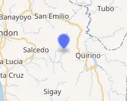 The town lies among the western hills of the Cordilleras in the interior eastern portion of the province of Ilocos Sur. It is bounded in the north by the town of San Emilio, Quirino in the east, Sigay in the south and Salcedo in the west. Its 7 barangays and sitios are connected by winding foot trails and seasonal rugged roads. The town is likewise endowed with natural scenery and wonders such as the payoh or rice terraces, pristine waterfalls, and the distinctive peak of Mount Tirad. There are also trails crisscrossing Tirad Pass, which were built through polo y servicio (forced labor) during the Spanish Period.