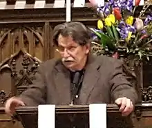 Gregory Orr speaking at Plymouth Congregational Church in Minneapolis, Minnesota on Monday, April 9, 2018.