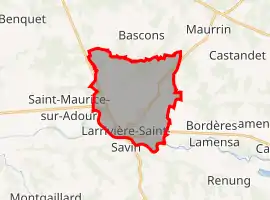 The town is located between two larger towns of Aire-sur-l'Adour and Mont-de-Marsan.