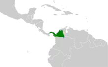 The grey-cheeked nunlet has a somewhat restricted range that extends from central Panama to north-central Colombia. N. f. stulta is the northernmost subspecies; it is found from central Panama into extreme northwestern Colombia. N. f. pallescens is found in the Caribbean lowlands of northern Colombia. The nominate subspecies is found in the interior of northern Colombia. The species inhabits a variety of landscapes including moist to humid primary and secondary forest, gallery forest, and thickets; it especially favors woodlands along rivers. it usually inhabits the lower levels of the forest but can be found up to the subcanopy. In elevation it ranges from sea level to 1,000 m (3,300 ft).[6]