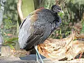 The grey-winged trumpeter (Psophia crepitans) is a member of a small family of birds, the Psophiidae. It is found in the northern Amazon rainforest and Guiana Shield in tropical South America. Unlike all other Psophia species, the rump and back are grey in the grey-winged trumpeter.[2]