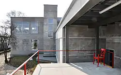 According to the founder, Gridchinhall's archetype was formed by the image of suburban offices of architectural workshops and old merchant houses, on the ground floor of which there used to be little shops. At Gridchinhall, living space is combined with exhibition areas and workspace.[6] Gridchinhall's office is located in an old hut with five walls, moved to the plot of land during the construction of the art centre.[7]