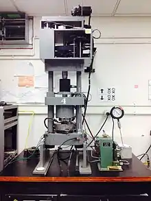 The Griggs apparatus was conceived by David Griggs in the mid 1960s during his time at the University of California at Los Angeles (UCLA). Since the inception of the Griggs apparatus it has become the work horse of many rock deformation labs world-wide, and has also helped elucidate numerous facets of plastic deformation in crystalline materials including the hydrolytic weakening of quartz.[2]