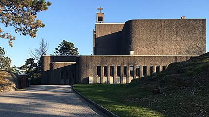 There are three Protestant churches in the borough and one Orthodox church. The Protestant churches are located at Vestheiene at Hellemyr, one with Grim torv and one in Strai called Torridal Church. The orthodox church is located at Tinnheia. Grim Church was finished in 1969 and is made out of concrete, the church has seating capacity of 750 people and is the largest church in the borough. Grim is the Protestant church for the district Grim and the district Tinnheia. Hellemyr Church was built in 1988 also of concrete and has a seating capacity of 220 people. The church is located at Vestheiene which is a small centrum for the district Hellemyr. Torridal Church is the church for the districts Strai and Mosby and is located in Strai. The church was finished in 1978 and is built out of expanded clay aggregate.