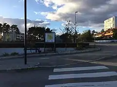 The two main roads in the area is European route E39 and Norwegian National Road 9. E39 starts with Bellevue and goes in tunnel under Hannevika which is called Hanneviktunnelen. The most traffical stretch in Kristiansand starts with Hanneviktunnelen. There is an exit of the highway to Hannevika and Tinnheia. The road splits and E39 goes towards Hellemyr and has an exit for Slettheia and again Tinnheia, then twice Hellemyr. E39 leads out to Songdalen. Norwegian National Road 9, shortened Rv9, starts with Garnterløkka roundabout and goes past the Christianssands Brewery and Grimsmyra. Rv9 passes Grim torv and goes through the neighborhoods Klappane, Krossen, Dalane, Bymoen before it goes through Strai and Mosby. The road is the main road for these three districts and leads past Høietun before it leads into Vennesla municipality.