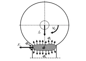 Stage I: As a workpiece enters the grinding zone the initial contact forces are unstable and rise abruptly short period of time and a small wear spot is formed. The overall performance of a wheel during this moment of unstable rising forces can be minimized with proper dressing conditions prior to use and can help effect the high peak and steady state forces which should normally be contained within a short period of time.