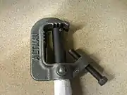 - Mafer Clamp – Featuring one flat and one v-notched jaw, both with padded grip surfaces, the clamp is used to attach equipment to an array of irregular surface, such as furniture.