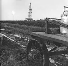 Natural gas was initially mainly a by-product of petroleum, which was more economically attractive. In 1948 the Nederlandse Aardolie Maatschappij (NAM), jointly owned by Shell and Esso, discovered a natural gas field in the Netherlands for the first time near Coevorden. This gave rise to the expectation that more natural gas fields could be found in the Netherlands. In the north and east of the country they searched for gas fields, including near the later Groningen gas field. However, in 1954 and 1955 drilling at Haren and Vlagtwedde yielded nothing.[3] On October 24, 1955, when looking for oil at Thesinge, natural gas was found in the Zechstein formation, but they drilled 40 to 50 meters too little to discover the Groningen gas field.[4]