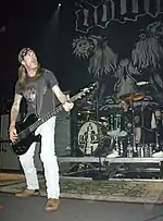 Bernard Coquelet argues that the "groove is the way an experienced musician will play a rhythm compared with the way it is written (or would be written)" by playing slightly "before or after the beat". Coquelet claims that the "notion of groove actually has to do with aesthetics and style"; "groove is an artistic element, that is to say human,...and "it will evolve depending on the harmonic context, the place in the song, the sound of the musician's instrument, and, in interaction with the groove of the other musicians", which he calls "collective" groove".[7] Minute rhythmic variations by the rhythm section members such as the bass player can dramatically change the feel as a band plays a song, even for a simple singer-songwriter groove.[8]