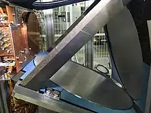 The telescope consists of two mirrors in a Mizuguchi-Dragone configuration, with a diameter of 30 cm (12 in). The telescope is inside the cryostat, which is mounted on a rotation table, with a rotary joint that provides helium gas and electricity to the cryostat.[2][3] The mirrors are cooled to 4 K (−269.15 °C) using a Pulse tube refrigerator to reduce the thermal noise from the mirror surfaces.[2]