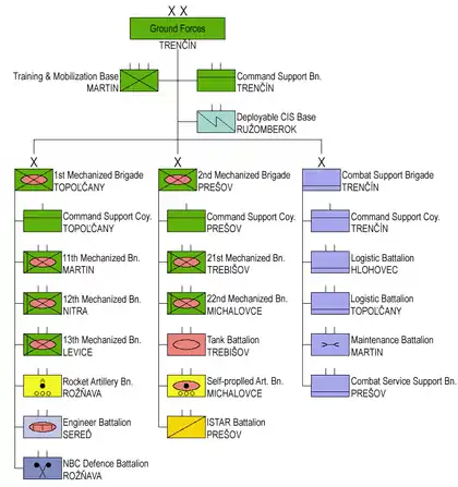 - Ground Forces Command, in Trenčín (Commander: 2 Star General)[1]