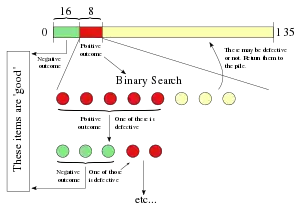 In general, finding optimal algorithms for adaptive combinatorial group testing is difficult, and although the computational complexity of group testing has not been determined, it is suspected to be hard in some complexity class.[3] However, an important breakthrough occurred in 1972, with the introduction of the generalised binary-splitting algorithm.[14] The generalised binary-splitting algorithm works by performing a binary search on groups that test positive, and is a simple algorithm that finds a single defective in no more than the information-lower-bound number of tests.