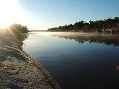 The Gualeguay River (Spanish Río Gualeguay[1]) is one of the major rivers of the Mesopotamic province of Entre Ríos, Argentina. Its source is in the north of the province, in the region between the cities of Federación and San José de Feliciano, and meanders in a general south-southwestward direction across the center of the province for about 350 to 375 kilometres (217 to 233 mi), receiving a large number of tributary streams. It passes by the cities of Villaguay, Rosario del Tala, and Gualeguay, and finally empties into the Río Paraná Ibicuy, a distributary of the Paraná River in the Paraná Delta.[2]