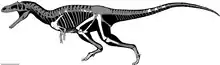 The holotype, MPCN PV 0001, consists of a partial skeleton lacking the skull. It contains four vertebrae of the back, three vertebrae of the middle tail, ribs, a basket of belly-ribs, the left shoulder girdle, the left forelimb, the right lower arm, the lower ends of both pubic bones, the right thighbone, the lower end of the left thighbone, the upper ends of the right shinbone and calf bone, elements of both metatarsi and three toes of the right foot. Most bones were uncovered in their original anatomical position but much of the skeleton had been destroyed by erosion.[1]