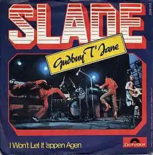 "Gudbuy T'Jane" is a song by the British rock band Slade, released in 1972 as the second single from their third studio album Slayed?. It was written by lead vocalist Noddy Holder and bassist Jim Lea, and produced by Chas Chandler. It reached No. 2 in the UK, remaining in the charts for thirteen weeks.[2] The song was certified UK Silver by BPI in 1973.[3] In the United States, the song reached No. 68.[4] It was also included on the band's 1973 compilation album Sladest.