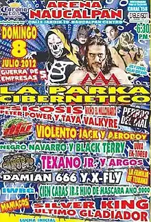 ![]() Official poster depicting (clockwise) Negro Navarro, Silver King, Cibernético, La Parka and Último Gladiador | |||