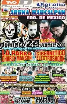 It was later revealed that Charly Manson had missed the event as he and a friend were arrested after getting into a fight with two police officers on the day of the show. The fight resulted in one of the officers suffering a fractured skull, the other a broken nose and whiplash while Manson's friend was shot in the foot by a third officer. Manson (real name Jesús Pozos) was originally denied bail and was expected to be waiting for his trial in jail, facing a maximum sentence of 15 years in prison for charges of aggravated assault and attacking authority figures.[6][7][8][9] On May 4, AAA announced that Pozos had been released on bail.[10] Pozos' bail was revoked on June 30, after which he was arrested at a AAA taping and taken to a prison in Mexico City.[11] On February 23, 2012, it was reported that Pozos had been sentenced to 15 years in prison for his role in the altercation with the two police officers.[12]